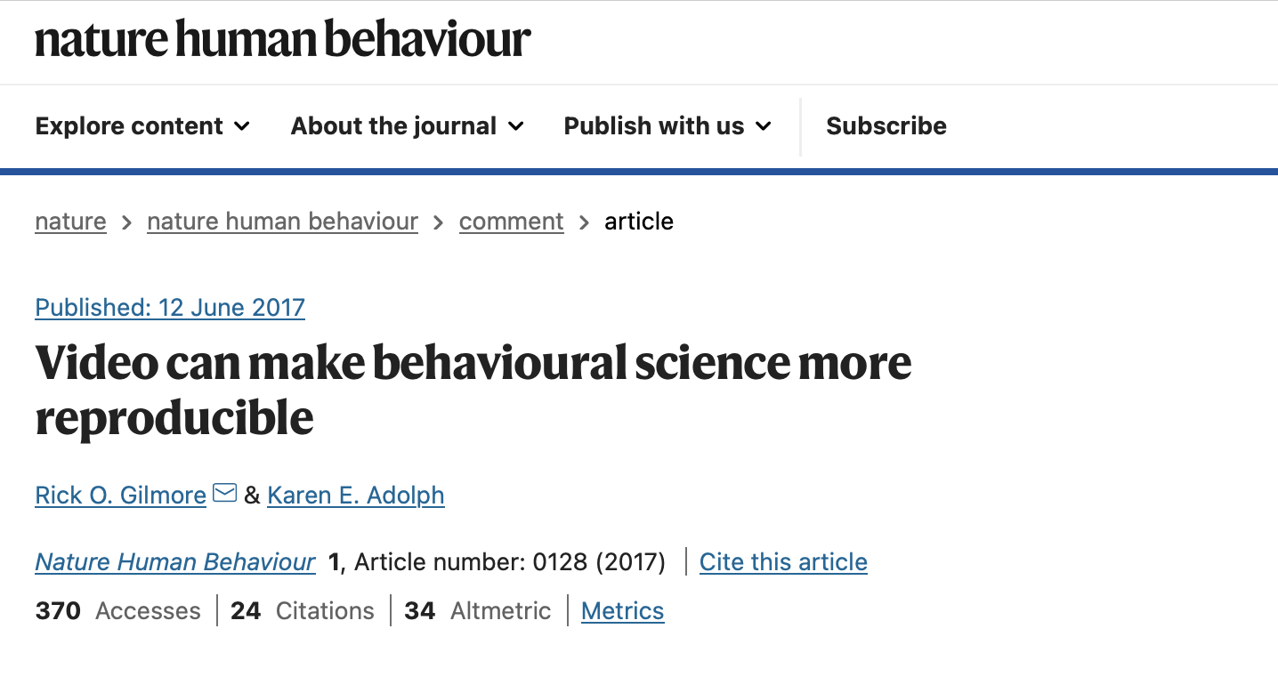 Gilmore, R. O., & Adolph, K. E. (2017). Video can make behavioural research more reproducible.