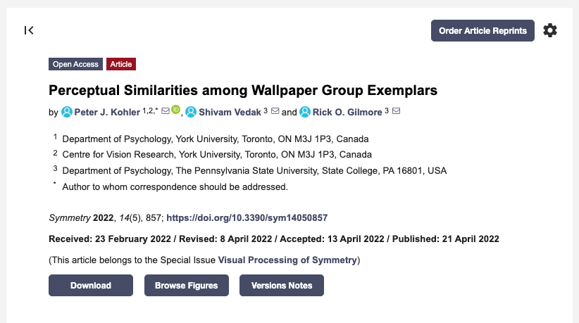 Kohler, P. J., Vedak, S., & Gilmore, R. O. (2022). Perceptual similarities among wallpaper group exemplars.